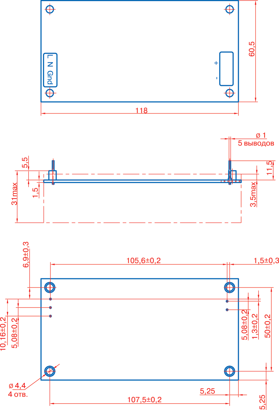 Одноканальные стабилизирующие блоки питания предназначены для питания напряжением постоянного тока радиоэлектронной аппаратуры. Конструктивное исполнение – плата, покрытая влагозащитным материалом. Масса блока 180 г. Диапазон рабочих температур от -40°С до +50°С. Нестабильность выходного напряжения при изменении входного напряжения от номинального до минимального и до максимального значений при максимальном токе нагрузки не более ±1%. Нестабильность выходного напряжения при изменении тока нагрузки от х.х. до 100% не более ±0,5%. Блок имеет защиту от короткого замыкания по выходу. После снятия короткого замыкания блок автоматически восстанавливает свои выходные параметры. Повышенная допустимая емкость нагрузки. Электрическая прочность изоляции 1500 В (действующее значение). Срок службы 15 лет.