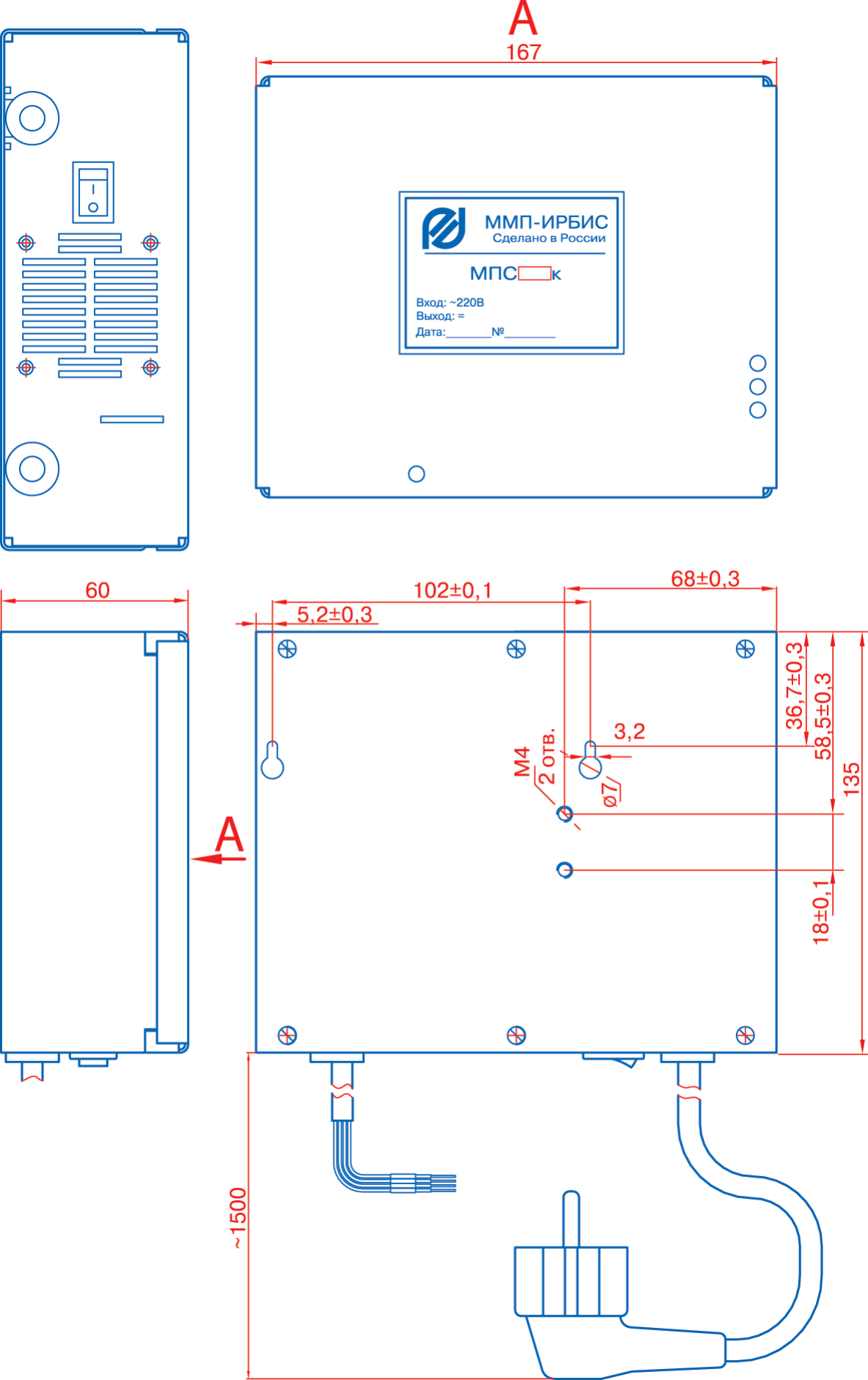 Одноканальные стабилизирующие блоки питания МПС200 предназначены для питания напряжением постоянного тока радиоэлектронной аппаратуры. Конструктивно выпускается в виде открытой платы и в металлическом корпусе. Масса модуля в корпусе 1400 г, без корпуса – 600 г. Электрическая прочность изоляции 1500 В (действующее значение). Типовой КПД 82…88%. Защита от перегрузок и короткого замыкания. Точность установки выходного напряжения ±2%. Изменение выходного напряжения при изменении входного ±0,5%. Изменение выходного напряжения при изменении нагрузки от 10 до 100% – 1%. Широкий диапазон рабочих температур – от 0 до +40°С. Расчетное время наработки между отказами 200 000 ч.
